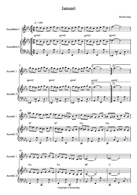 Ook schrijf ik stukken voor zowel de beginnende als ook de gevorderde accordeonleerling. Ik maak arrangementen op maat voor duo’s of trio’s, Hieronder vind je een paar voorbeelden en fragmenten uit mijn lespraktijk. Wil je meer hierover weten neem dan contact op.